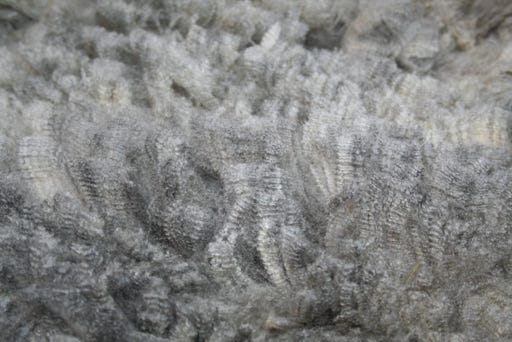 This fleece is soft and uniform with well-formed, medium-sized locks and fairly clear, regular crimp.
