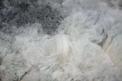This uniform fleece is very soft, light to medium gray in color with nicely formed, small to medium-sized locks and clear, regular crimp.