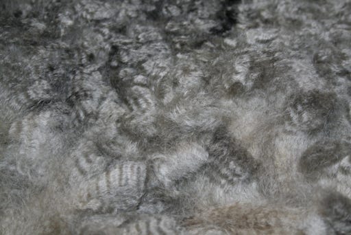 This variegated fleece is fairly soft and very lustrous. The crimp is strong and regular, locks are medium-sized, and the staple length is uniformly long.