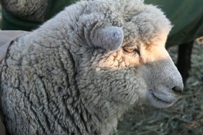 Snowy is a white Romney ewe.