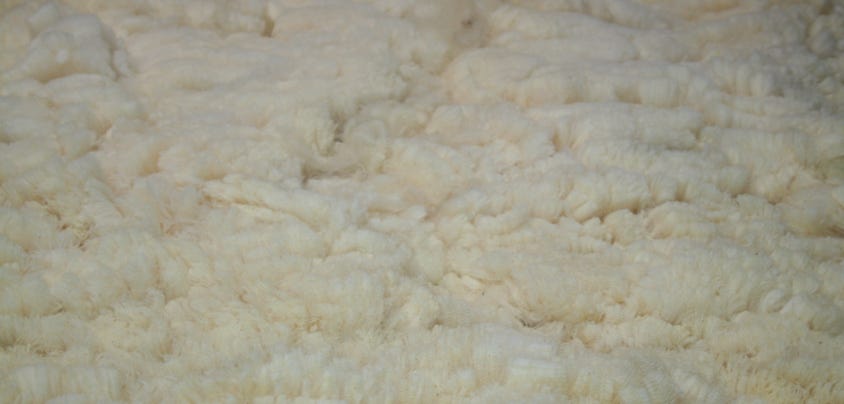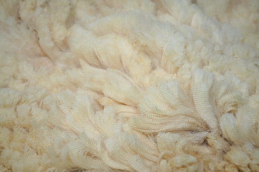 This is a wonderfully soft fleece with fine, regular crimp. The locks are mostly medium-sized.