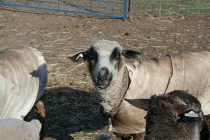 Fahla is a gray yearling CVM/Romeldale ewe.