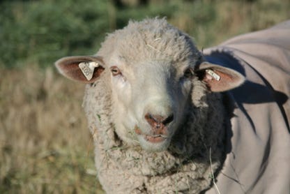 Rizma is a white Romeldale ewe.